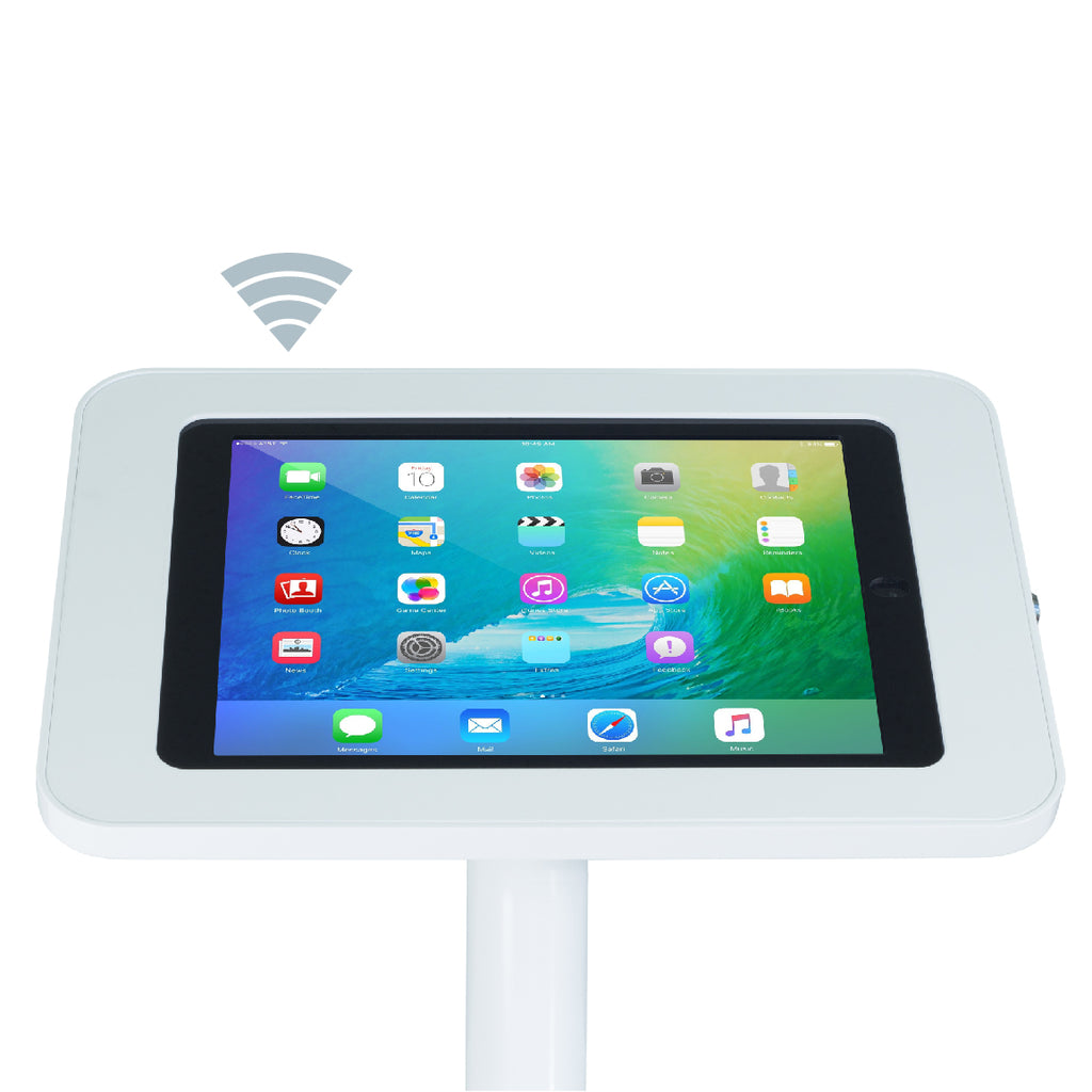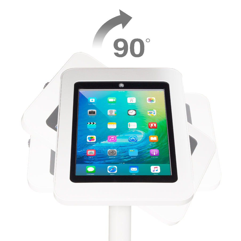 The Elevate Kiosk for iPad is the ultimate commercial solution for trade shows, museums, public spaces, and for anyone using an iPad or tablet for multimedia display signage. With the significant expansion of the mobile application for tablets across industries, many companies are looking for ways to enable this technology to increase productivity in their business. These modern and elegant kiosks come in a choice of white or black and offer a variety of configurations including countertop, wall mount, or floor standing. Tablet kiosks are a very approachable solution for any industry or professional environment. Adjustable, lockable, and durable — the Elevate is the best way to utilize your iPad or tablet as a display.